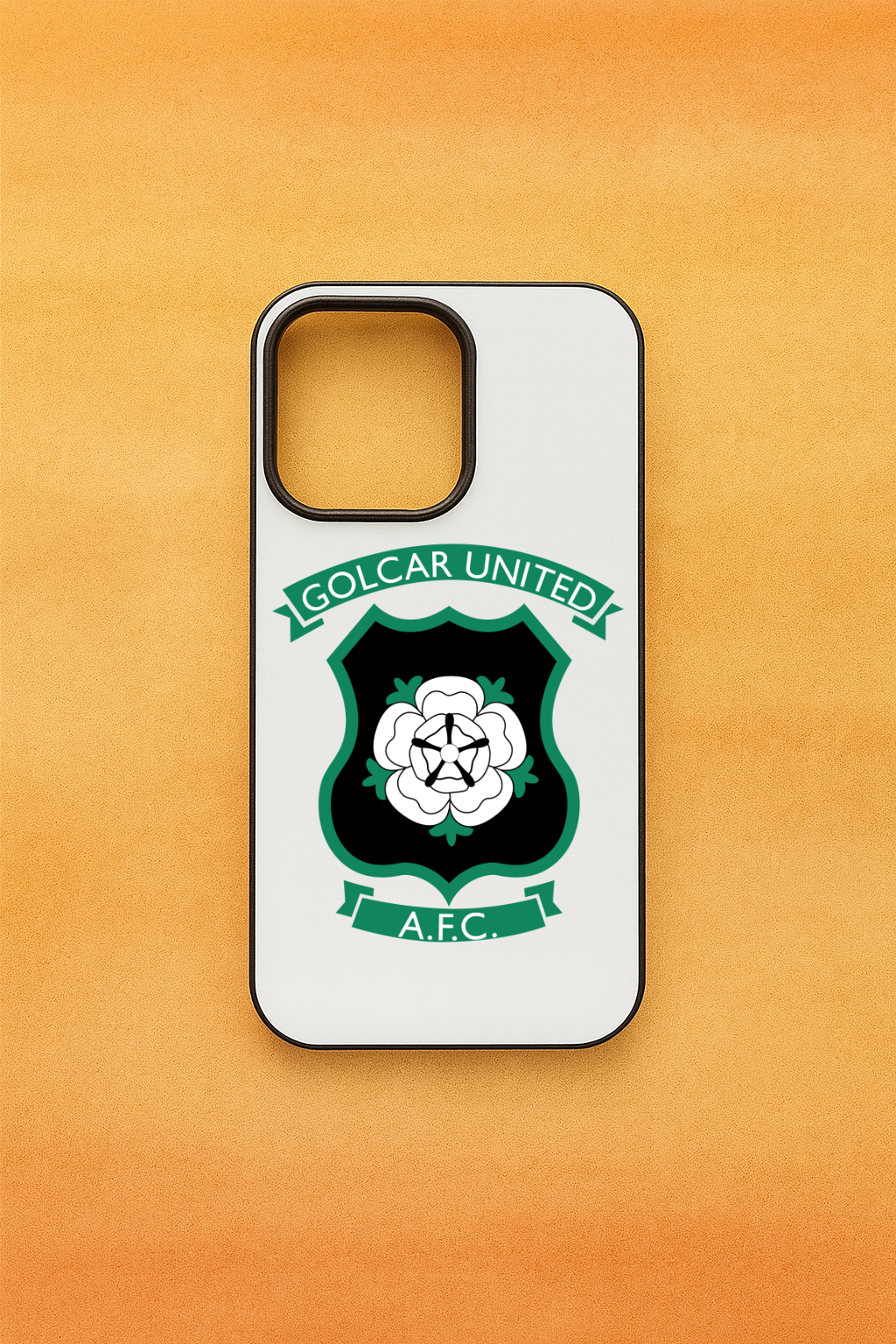 Black plastic case with a white background. Designed for the iPhone 16 Pro, featuring the Golcar United FC badge. Lightweight, durable, and provides everyday protection with a slim fit.
