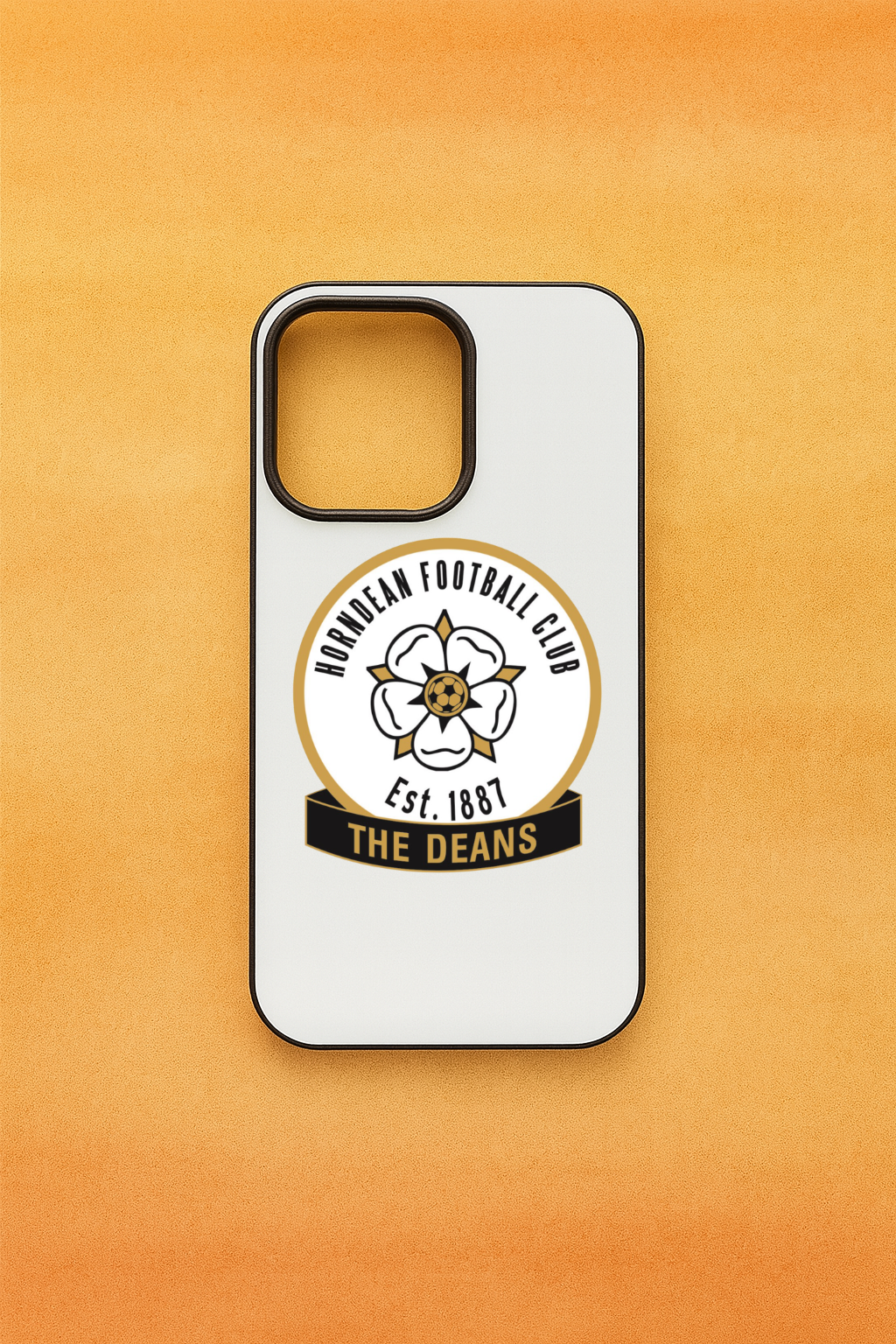 Black plastic case with a white background. Designed for the iPhone 16 Pro, featuring the Horndean FC badge. Lightweight, durable, and provides everyday protection with a slim fit.